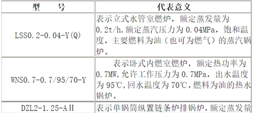 鍋爐型號